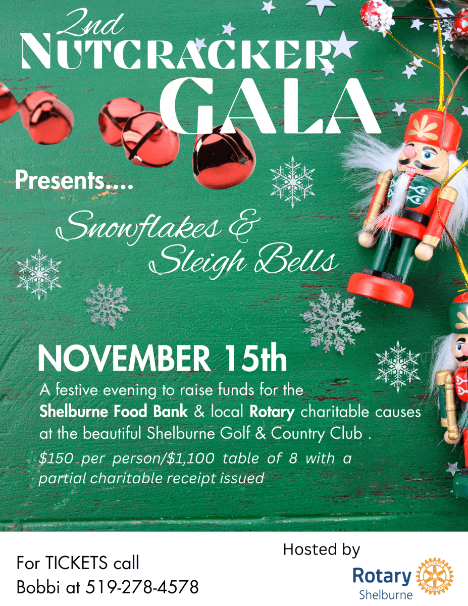 The Rotary Club of Shelburne presents the Nutcracker Gala on November 15, 2025, at the Shelburne Golf and Country Club.