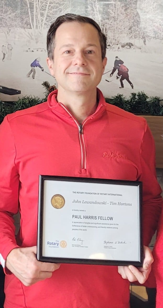 Shelburne Rotary recognized John Lewandowski of Tim Horton’s Shelburne for his support of Shelburne Rotary through the Tim Horton’s Smile Cookie Campaign. John received the Paul Harris Award, Rotary’s highest recognition. John’s support has allowed Shelburne Rotary to support local organizations and causes including the Backpack Program, Splash Pad Enhancements, Shelburne Hamper Program and Shelburne Food Bank.